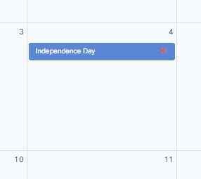 You can also delete any holiday. Press the red cross mark on the holiday and confirm the pop-up dialog to confirm deleting the holiday.