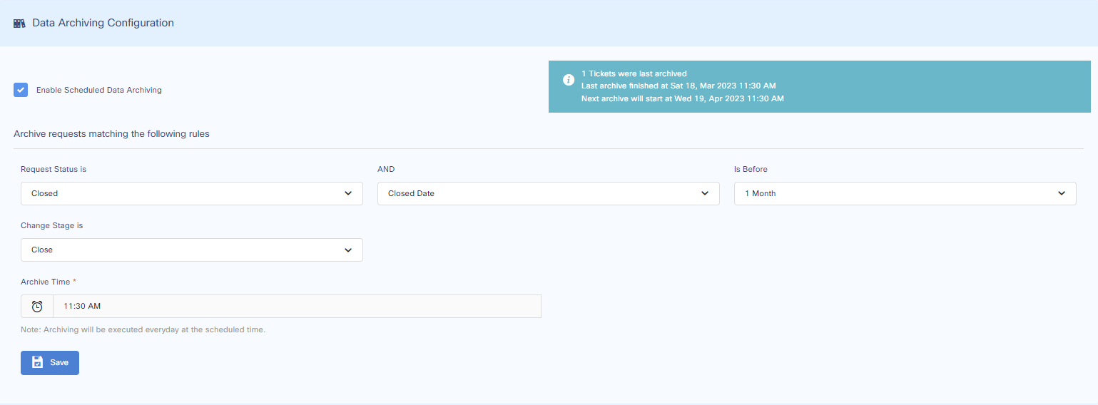 Choose the time on which you want to enable Scheduled Data Archiving.
