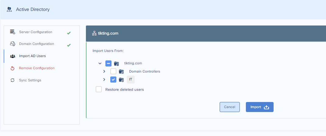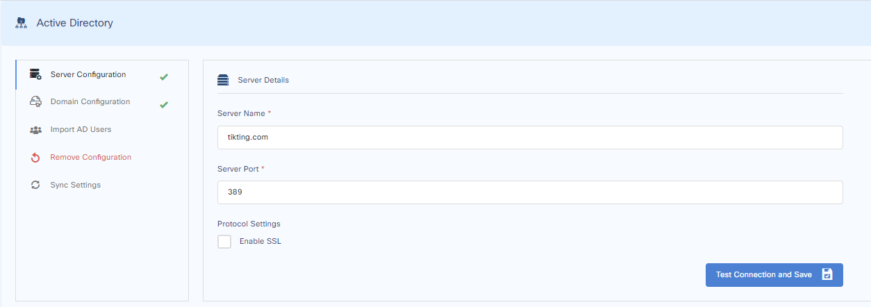 Active directory is used to fetch users and provide users their logins to Tikting through Active Directory.