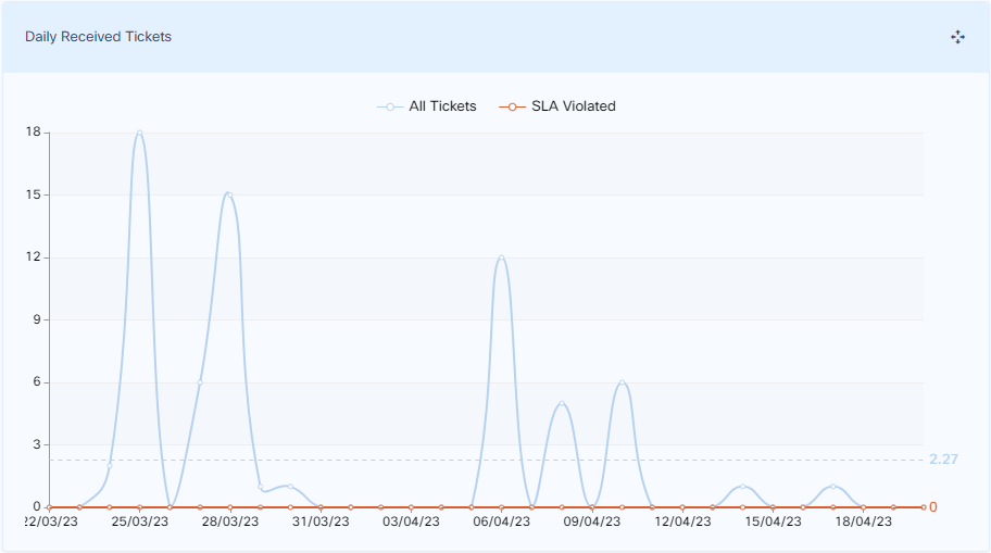 Daily received tickets can filtered by All Tickets and SLA Violated tickets.
