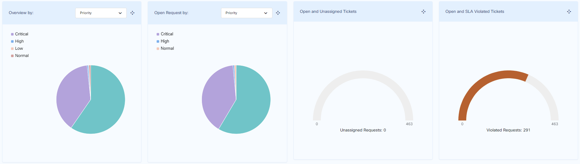 Open and Unassigned Tickets and Open and SLA Violated Tickets have their separate graphs.