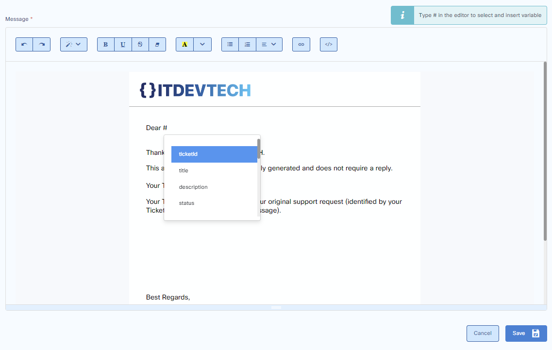 - Text Editor Template Variables