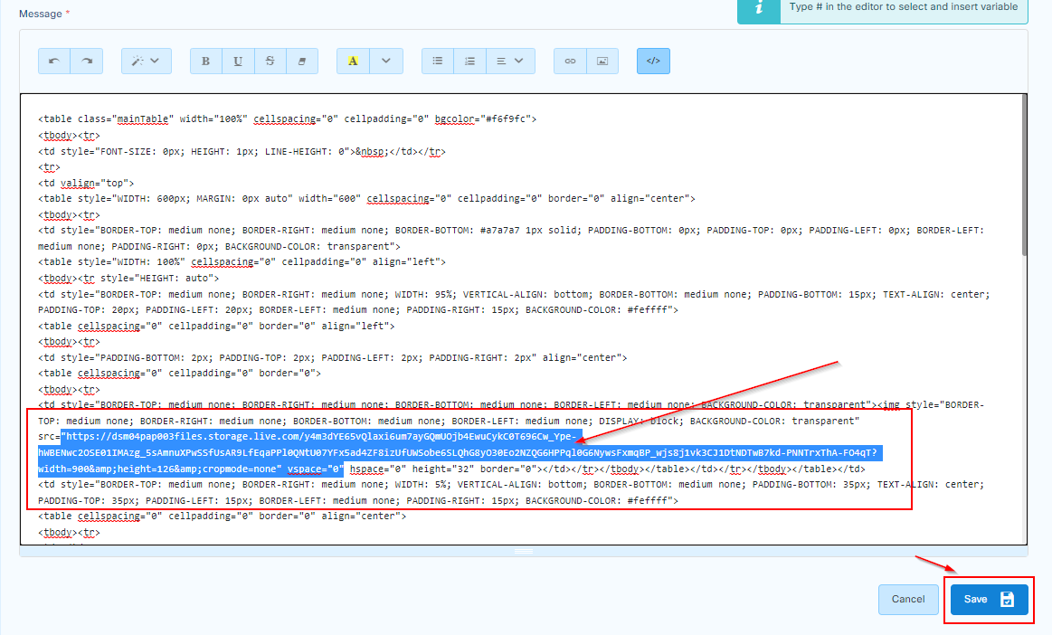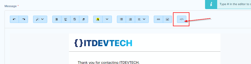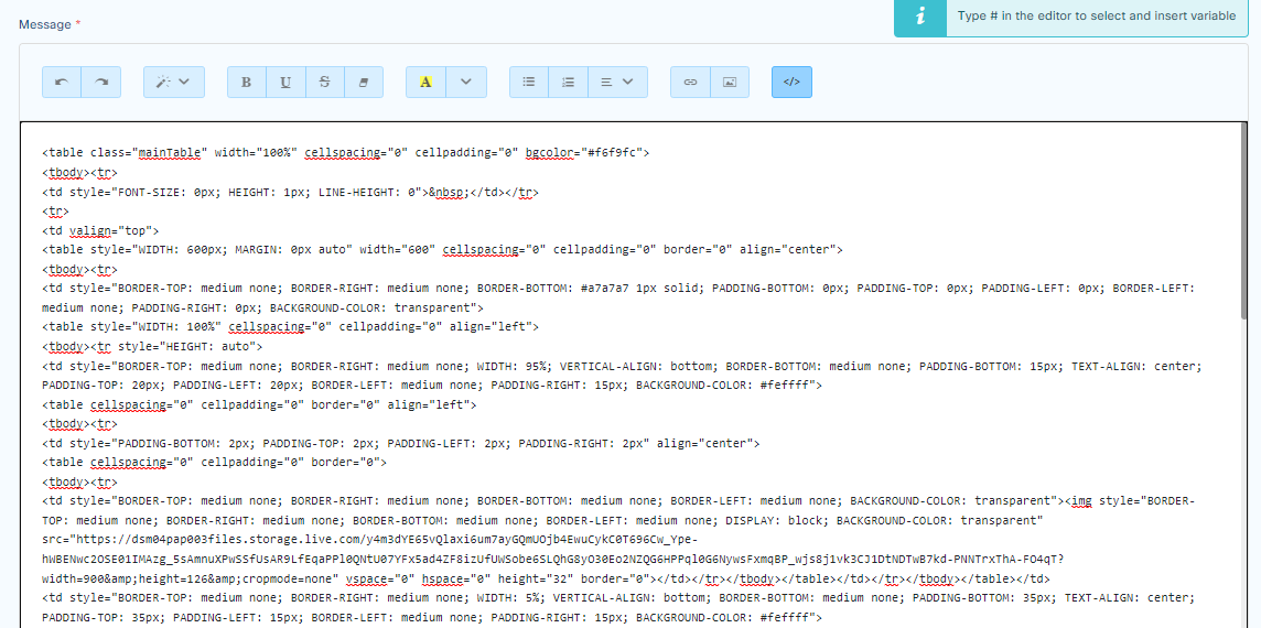 Standard notifications are html file which can be edited by pressing the code button in the editor.