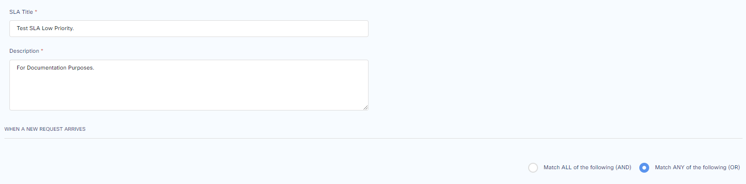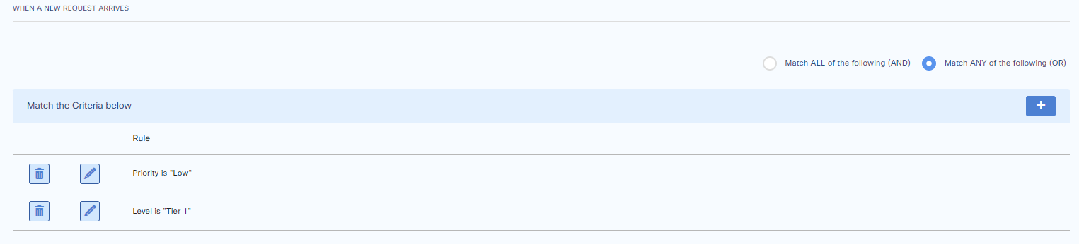 For example a Ticket with Tier 1 and Medium Priority with OR Rule will be applied this SLA because it meets