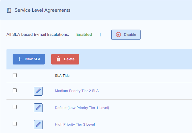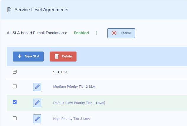 Go over the System Settings before making SLAs to optionally select default incoming tickets applied certain priority or tier levels.
