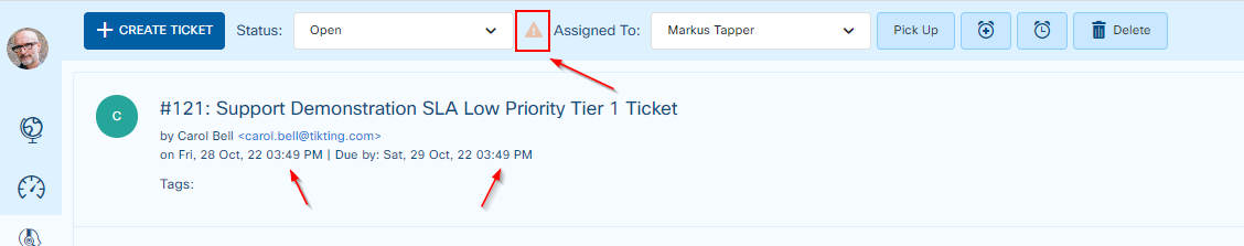 Change SLA of a ticket via inline editing on the main tickets page.