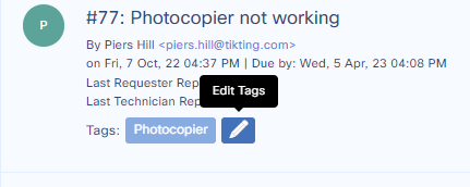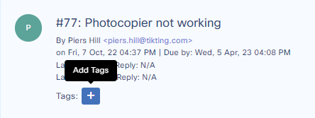 Tags can be added to the tickets by pressing add tag button.