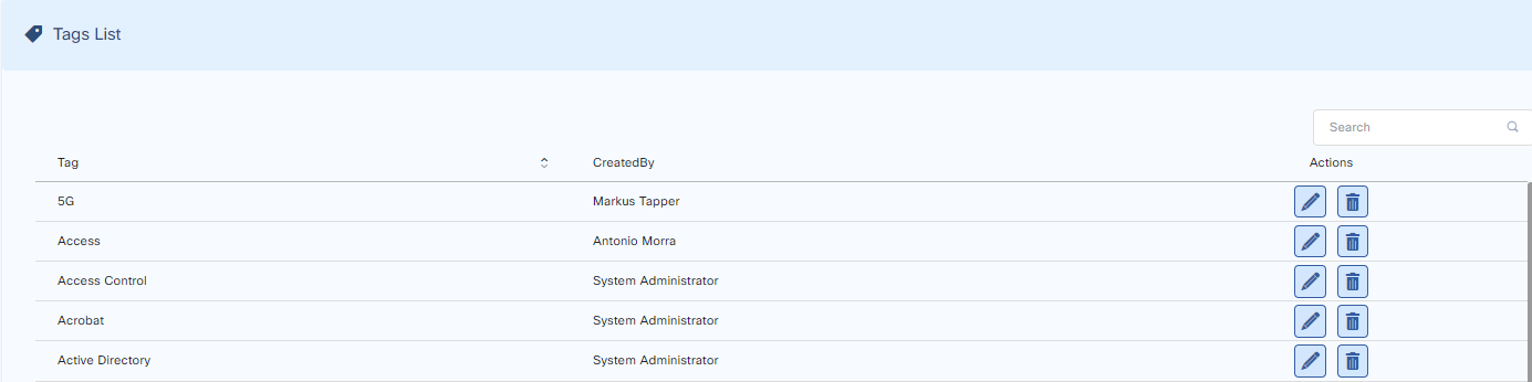 Administrators can see and delete the tags from Tags list.