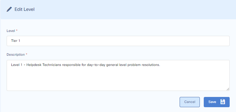 Tickets can be linked to Tiers. Tier level can be linked as a measure to indicate the complexity of a ticket. Yet in larger deployment staff hierarchy can also be configured to link with Tier levels.