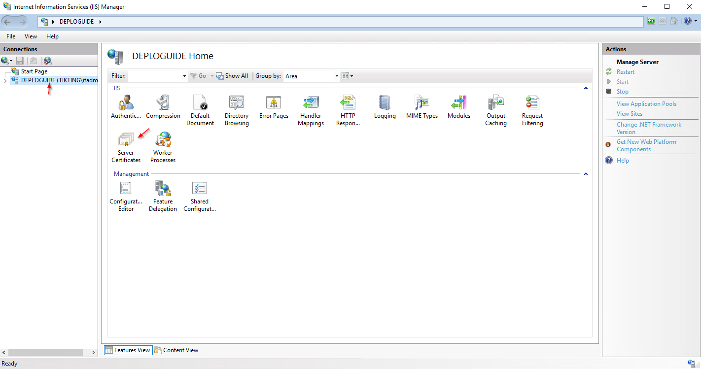Click Server Certificates as shown in the picture.