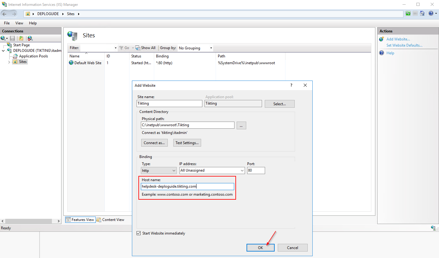 - In the hostname field choose the URL which you want to access Tikting Helpdesk and Change Management System.