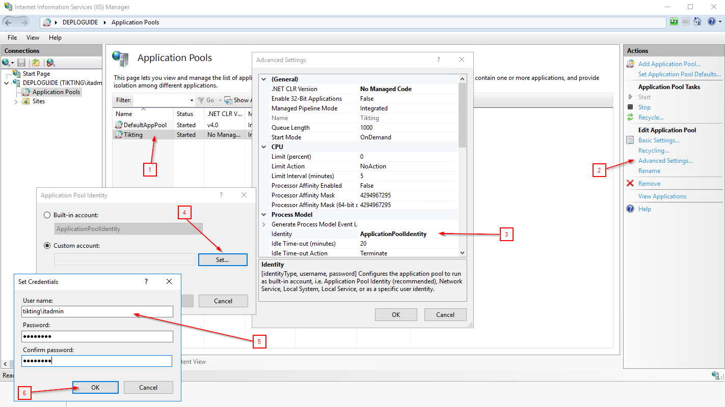 - Under Process Model and click ApplicationPoolIdentity.