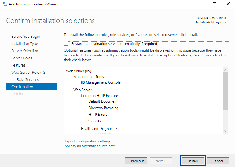 - Install IIS Server from Server Manager > Roles and Features.