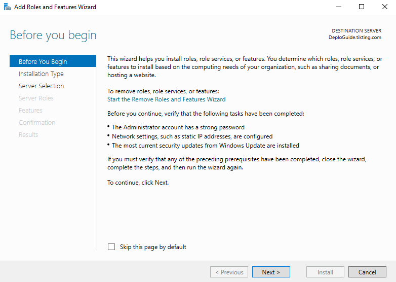 - Choose Role-based or feature-based installation.