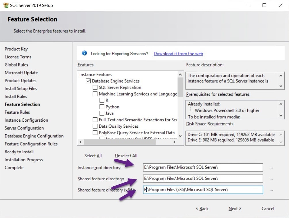 - Database Engine Services are required. Meet the remaining prerequistes (if any) and click next.