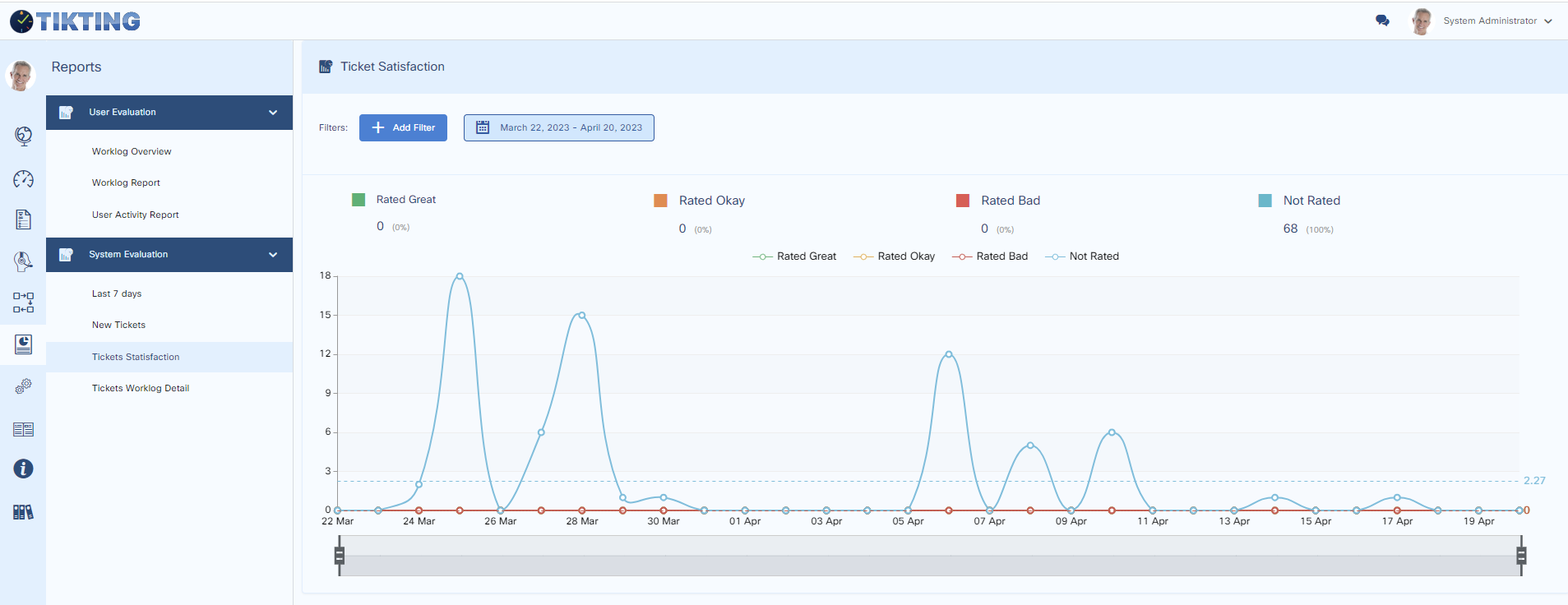 Reports are accessible to Administrators to review the use of Helpdesk and Staff