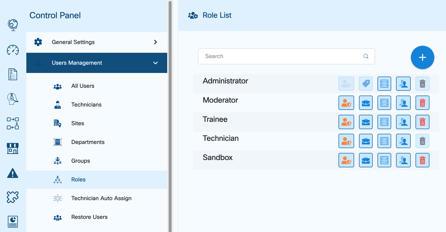 Each technician have a set of permissions to execute specific tasks in the helpdesk.